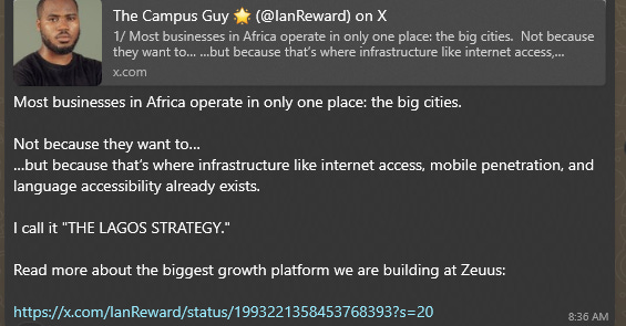 He thinks that most African businesses only operate in big cities and it’s not only because they want to. Click here for the full read!